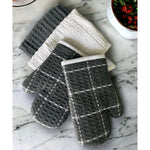 This Baking Gift Set includes a set of two kitchen towels and a set of two oven mitts.