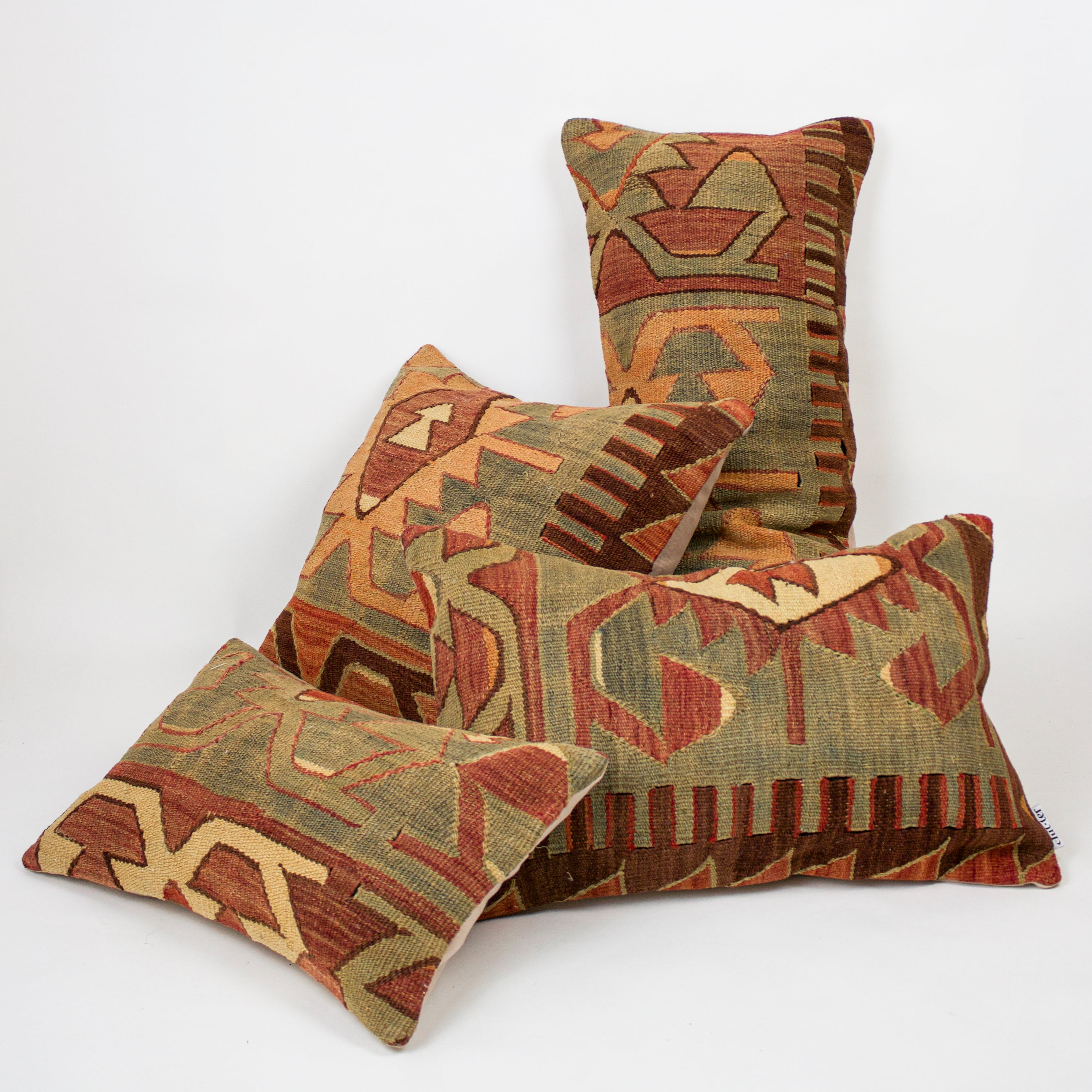 Turkey is known for its flat-woven rugs, and rightfully so! This handwoven technique has been passed down through generations, creating textiles that share the voice of each artist. We have repurposed these storied textiles into one-of-a-kind pillows. Kilim pieces are heavily textured and handcrafted from wool yarns. The pattern and color will vary from pillow to pillow, please scroll to see examples of this variation.