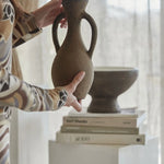 Please note, that this clay vase is handmade by artisans and is styled best as a decorative piece. Do not add water to the vase as it is composed of clay and will cause damage. If you would like to use fresh flowers, we suggest arranging them in a slender glass vase or mason jar, then placing that jar inside the vase.
