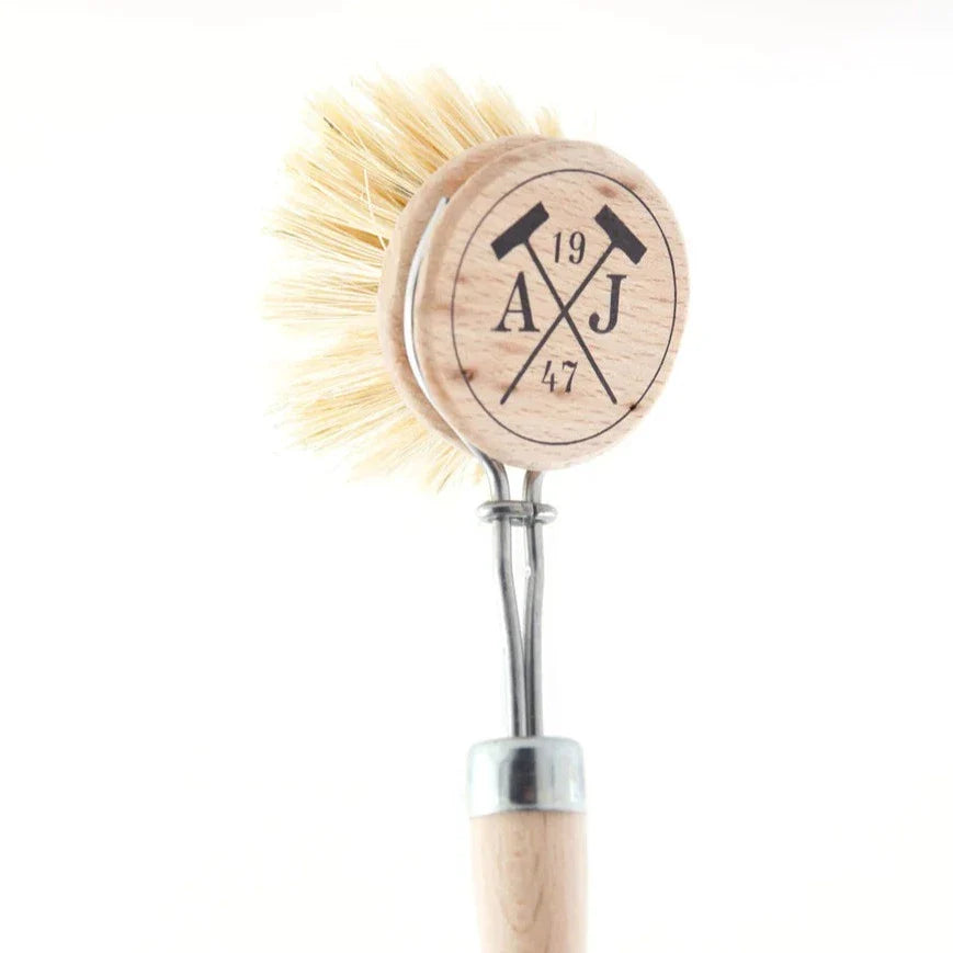 A simple, efficient, and elegant dish brush. Genuine French beech wood with tough mixed vegetable fibers. A sustainable option to dish brushes with refillable brushes that simply attach to the handle. Sold as a handle and brush, or as brush refill only.