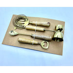- Quality: Brass coated with wooden handles