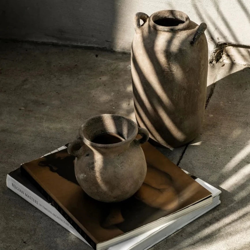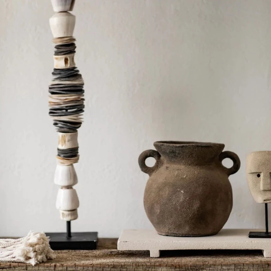 *Please note, this clay vase is handmade by artisans and is styled best as a decorative piece. Do not add water to the vase as it is composed of clay and will cause damage. If you would like to use fresh flowers, we suggest arranging them in a slender glass vase or mason jar, then placing that jar inside the vase.