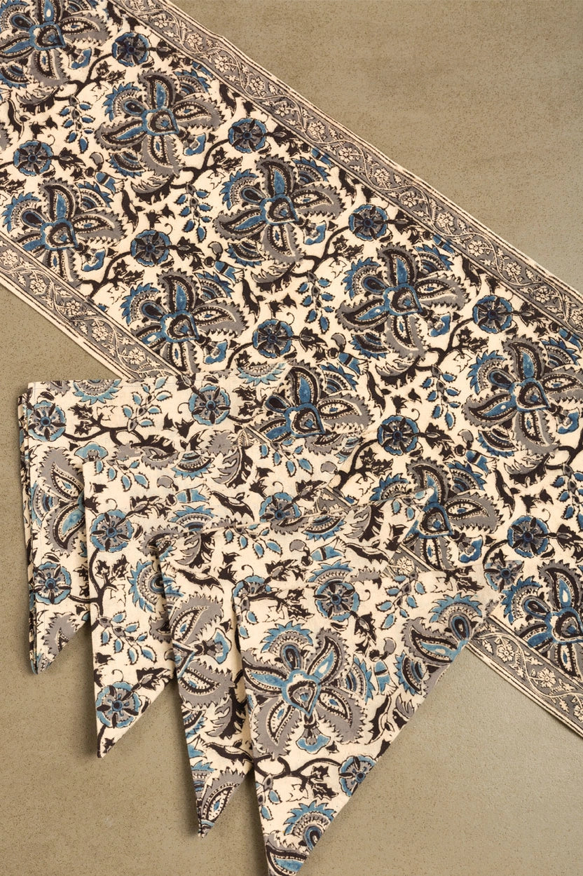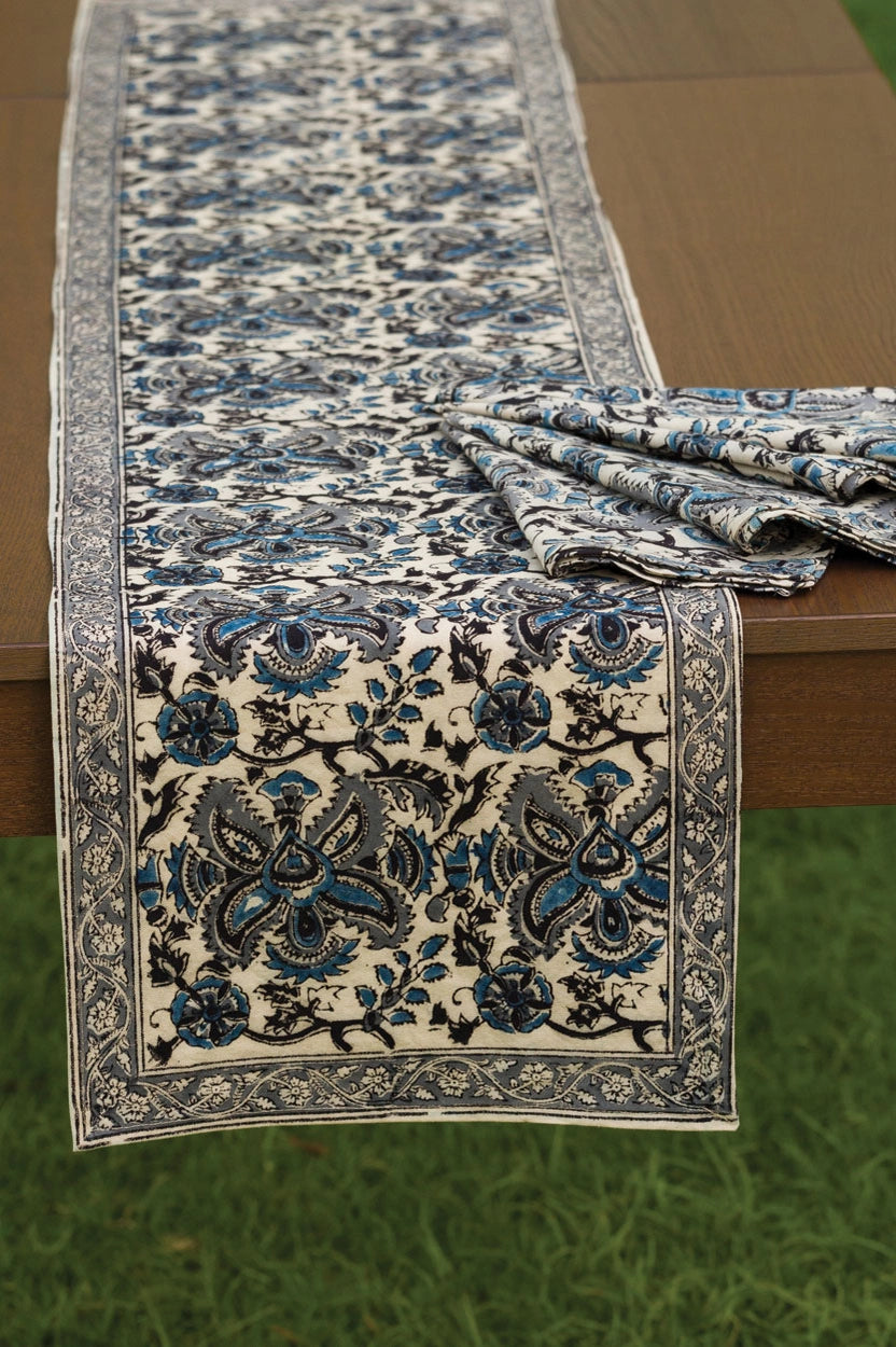 Kalamkari Table Runners are made with 100% sturdy cotton canvas and natural plant-based dyes. Artisans in Southern India print the fabric for these handmade table runners using the block-printing style known as “kalamkari”, which involves printing the fabric with natural dyes using wooden blocks and then filling in the details with hand painting. Each piece is a work of art and showcases the beautiful block printing traditions of India with eco-friendly dyes.