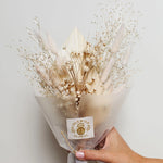 Dried flowers to last a lifetime. This bouquet is a tropical cluster in sage green and white.
