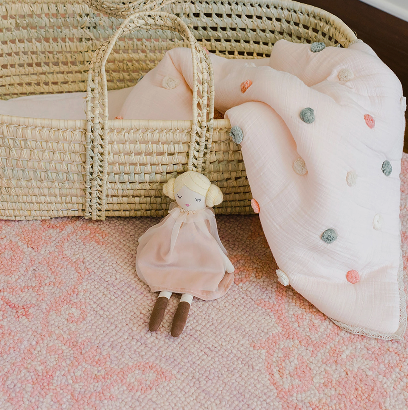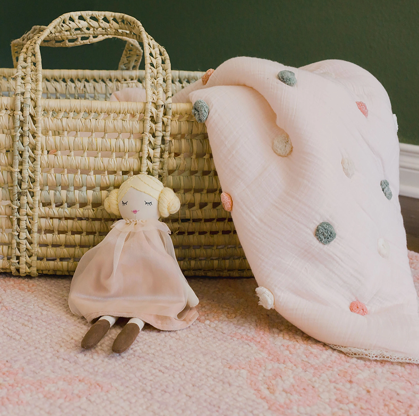 Perfect for cuddles or to accent a styled shelf in your nursery. Our plush dolls are intricately designed with handmade details for a truly artisanal look. Sure to bring a smile to your little one's face!