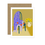 An art card crafted by Allison Poplett from her original artwork called "Cozy Room". This card comes with a kraft envelope and is blank inside. It is packaged in an acid-free plastic sleeve. All greeting cards are designed, printed, and packaged by hand in Allison's home studio.