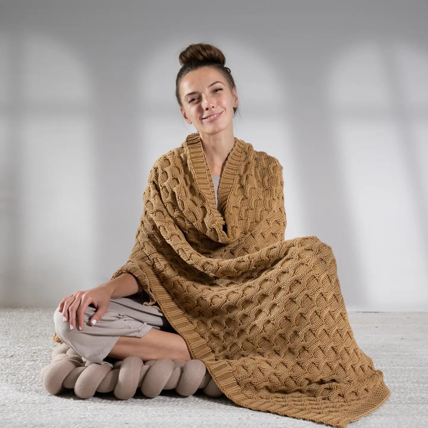 Wrap yourself in the warmth and charm of our oversized chunky knit throw. This cozy blanket, inspired by the rolling hills of Ireland, is perfect for curling up by the fireplace or snuggling on the couch. The intricate cable knit pattern adds a touch of rustic elegance to any space.