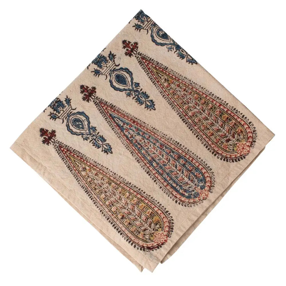 The Cypress tree's silhouette is seen in landscapes all over India. It appears here in slender form, hand block printed on a cotton napkin. Practicing a traditional kalamkari technique that uses natural vegetable dyes, the Cypress Tree Napkin is crafted in southeast India by makers with Asha Handicrafts.