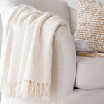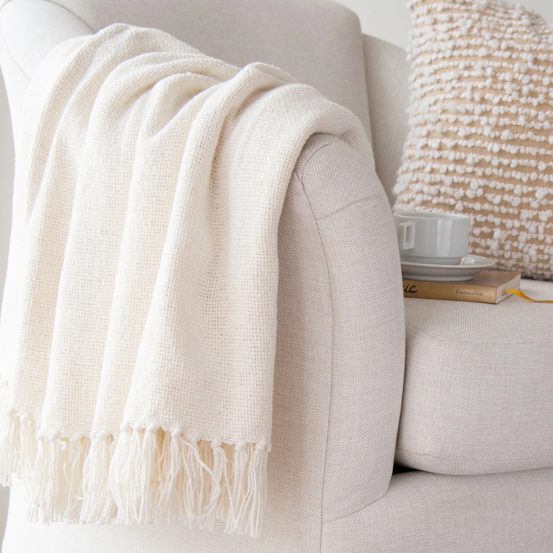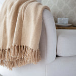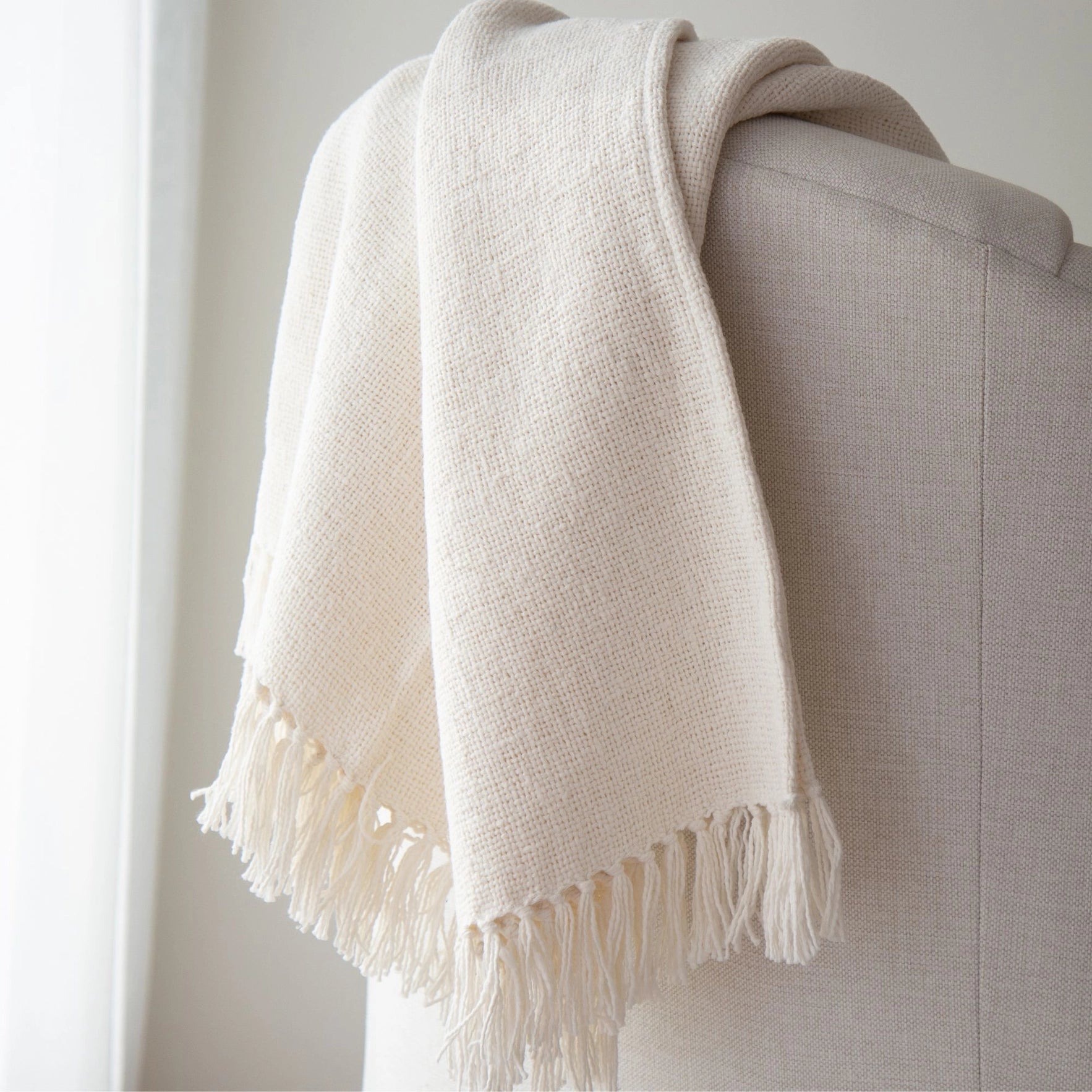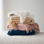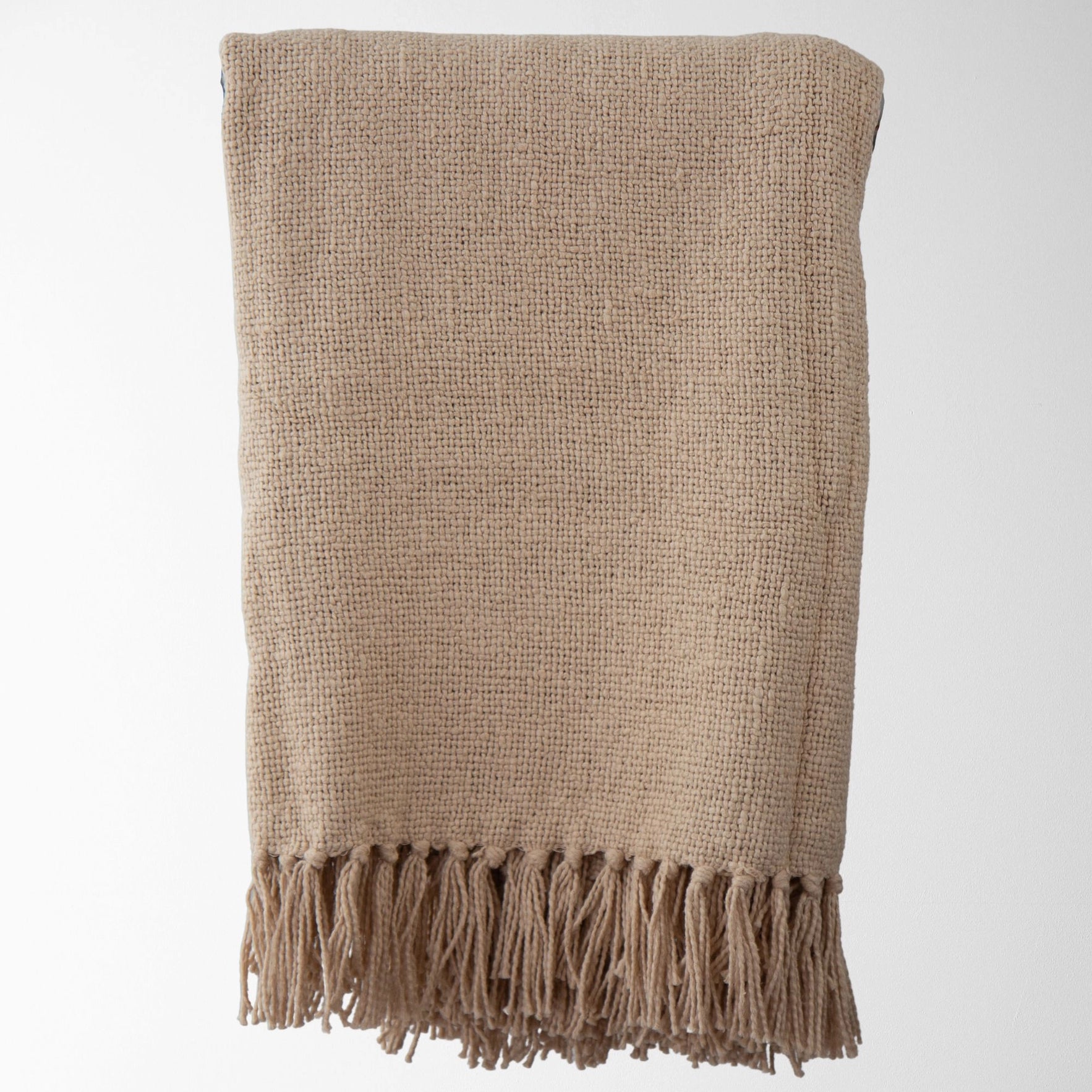 Cozy up at the end of a long day and enjoy our Darby Fringe Throw. The Darby throw blanket is made from linen-look weaved fabric and is dyed and woven for dimension and color. This handmade blanket is made using traditional weaving methods mixed with modern aesthetics to create a timeless blanket of heirloom quality.