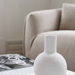 Handmade in Portugal from durable earthenware, this piece is perfectly contemporary and minimalist. To be used for freshly cut flowers, dry flowers, or as a stand-alone piece for your table, console, end table, and beyond.
