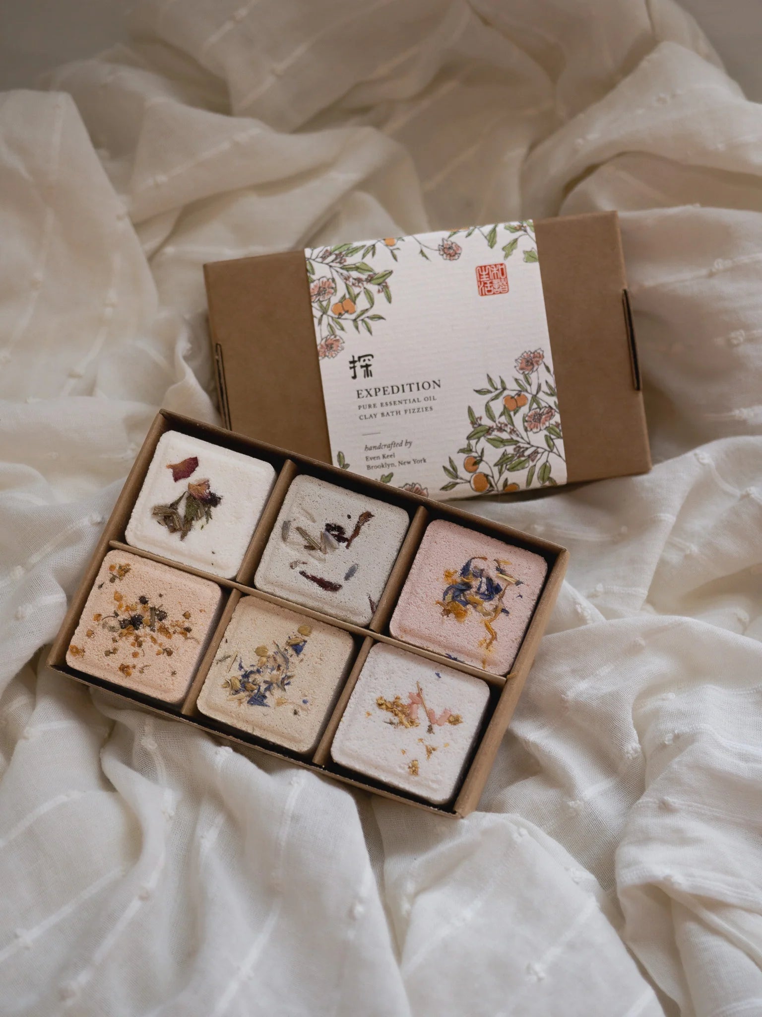 The nourishing bath fizzies provide you 6 bath sessions and contain only 5 ingredients–