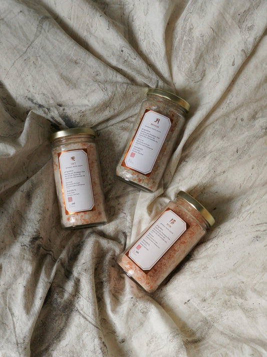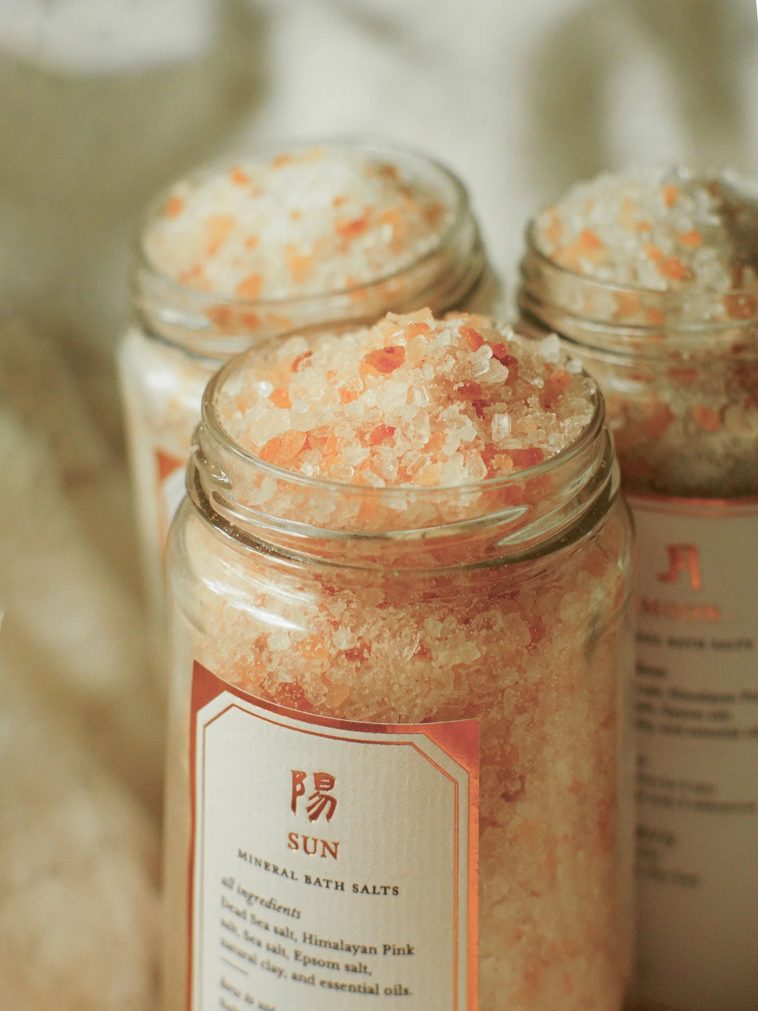 Sun: Dead Sea, Himalayan Pink, Sea, and Epsom; evoking a powerful sensory delight through fragrant citrus essences.