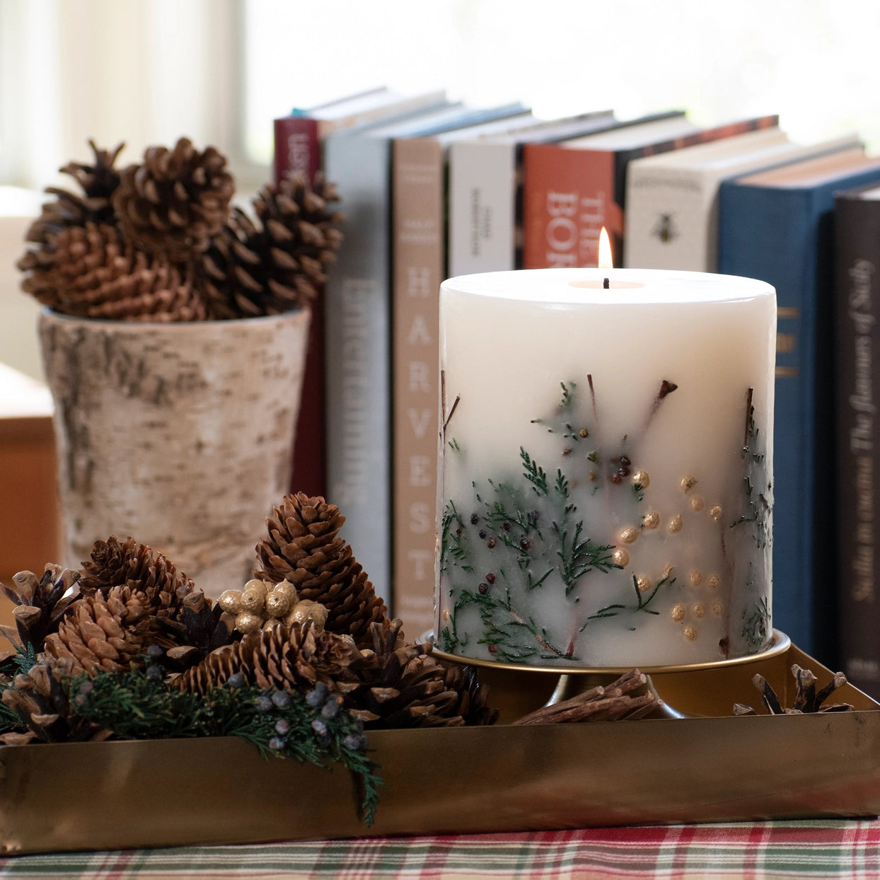 With beautiful pine branches embedded throughout, this botanical candle adds a warm glow and festive fragrance to any home.