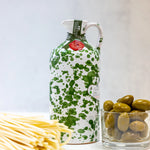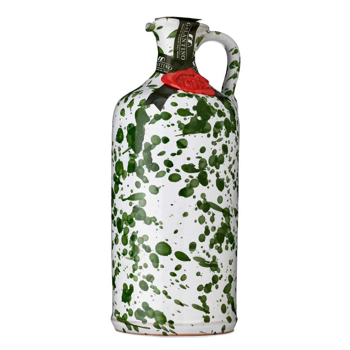 The “Fantasia" ceramic bottle comes in a variety of colors and patterns and is hand-painted by local artisans of the Puglia region of Italy, where the award-winning Frantoio Galantino olive mill is located. It is filled with their delicious and authentic extra virgin olive oil made from Ogliarola and Coratina olives. Golden yellow-green in color and well-balanced flavors of almond and artichoke make this an ideal extra virgin olive oil for everyday use. Great for cooking and for dressing a salad.