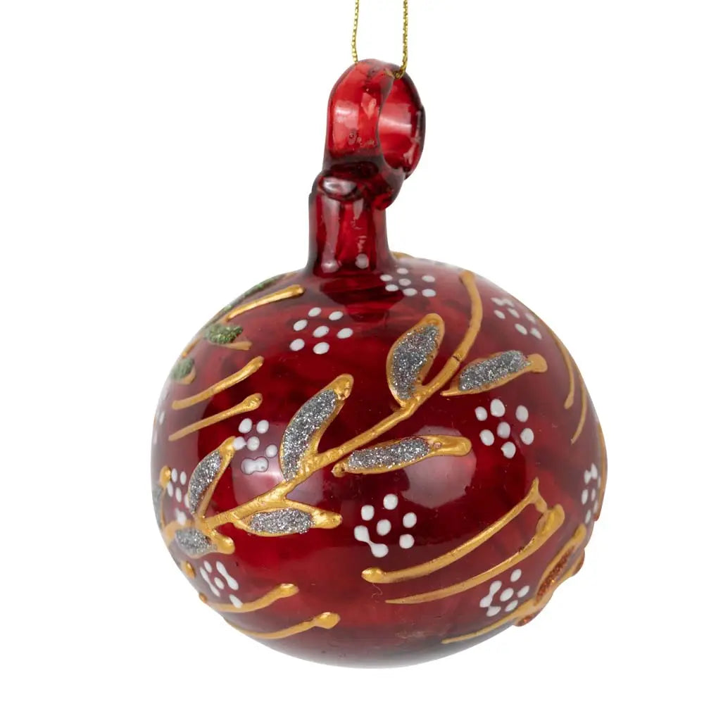 With lights strung nearby, this handblown, hand-painted glass ornament will emanate a warm glow from your tree and holiday décor. The Natsheh family’s 700-year-old secret glass-blowing process creates the signature swirl that makes each of these ornaments one of a kind - created by Tawfiq Natsheh and his fellow glass-blowing artisans with Hebron Glass in West Bank.