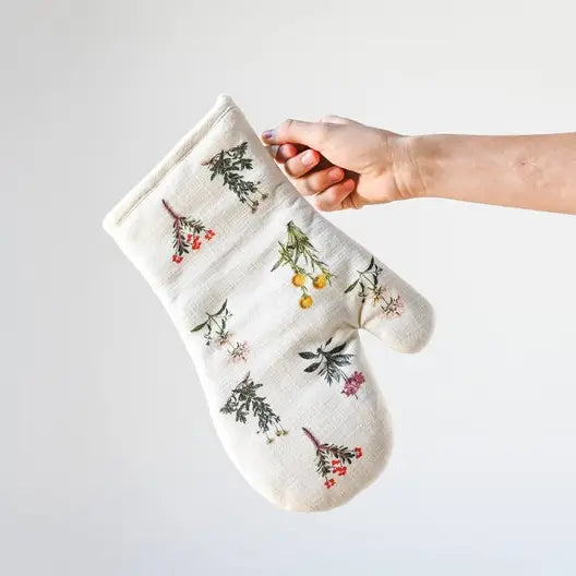 Featuring vintage botanical prints, this oven mitt is a subtle yet classic piece that is sure to never go out of style. The quilted interior, the extra layer of padding, and the simple cotton fabric on the exterior make it the perfect mitt to use for even your hottest dishes.
