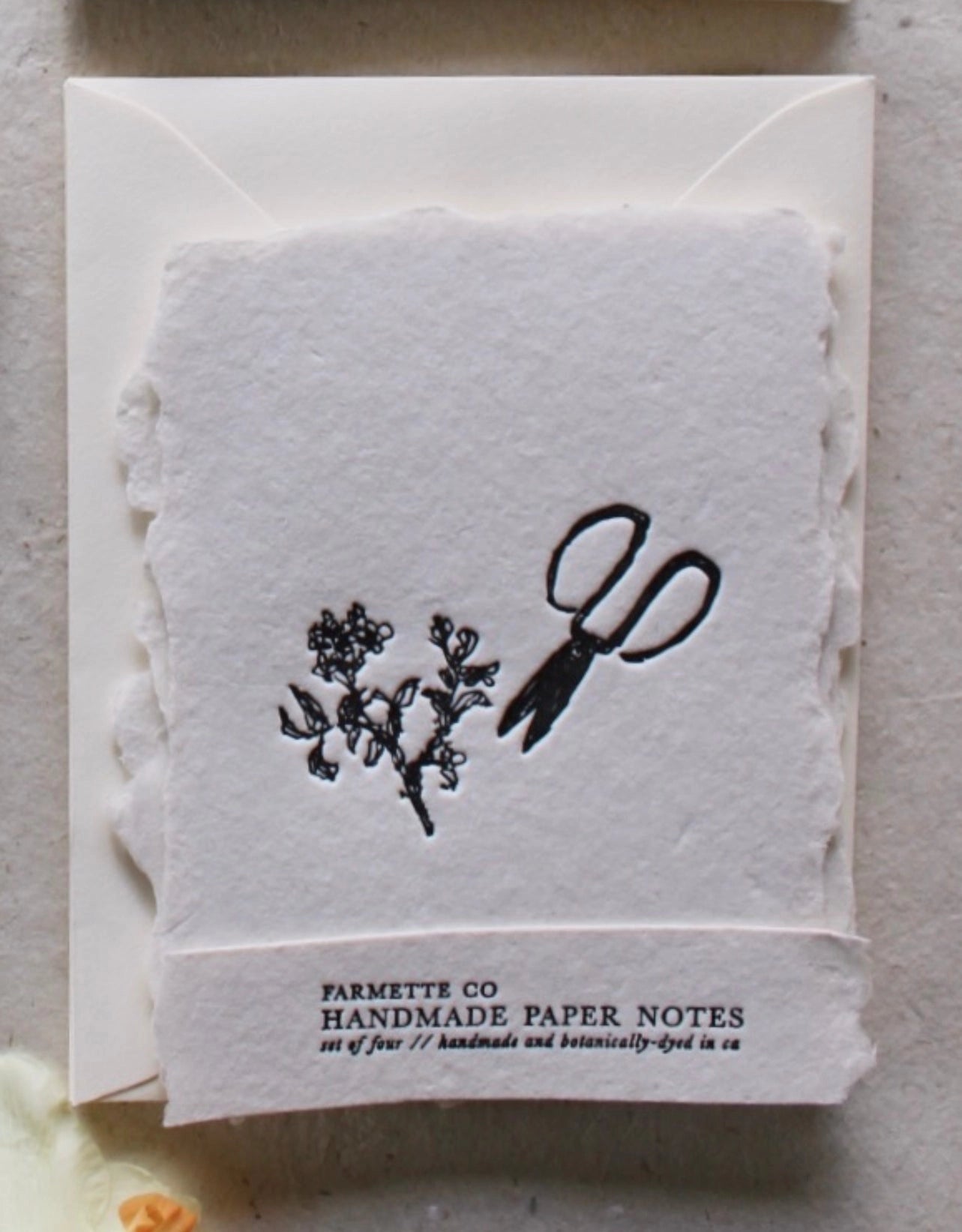 Beautiful handmade paper notecards, letterpress printed one at a time with heartfelt images and words. Full deckle edge paper handmade in Farmette's California studio, hand-fed onto antique letterpresses for a textured deboss.