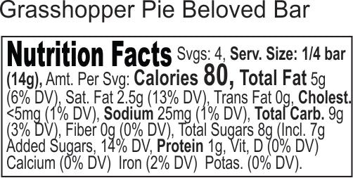 Grasshopper Pie includes chocolate wafer cookies and mint curls in minty milk chocolate.