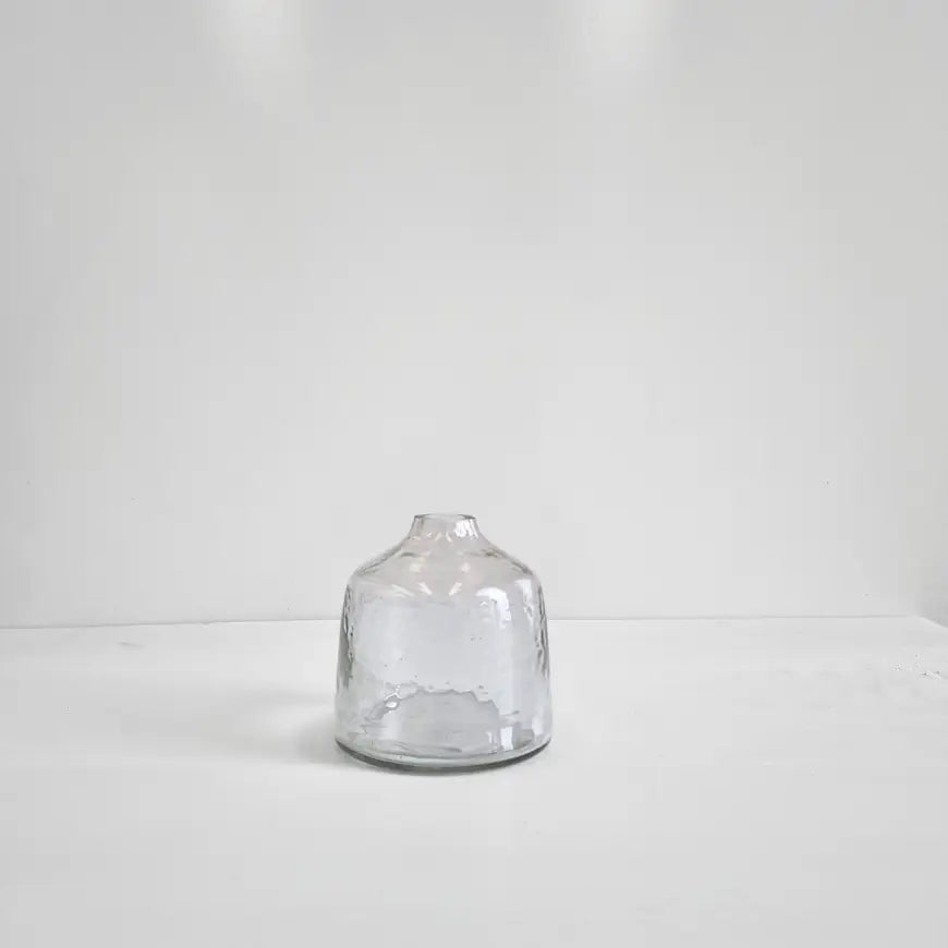 Introducing the exquisite collection of handblown hammered glass bud vases, a perfect blend of ethical craftsmanship and sustainable design. Each vase is meticulously hand-crafted from 100% recycled glass, offering a unique hand-hammered texture in three complementary shapes. Ideal for showcasing a single bloom or a small bouquet, these bud vases bring a touch of subtle texture to any space while honoring a commitment to people and the planet. The bud vases are sold individually so you can curate the perfect collection for your space.