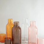 Form meets function in these stunning glass carafes. Each is handblown from recycled glass then meticulously hammered by hand for a truly unique finish. The set includes a carafe and lid that doubles as a small drinking glass.