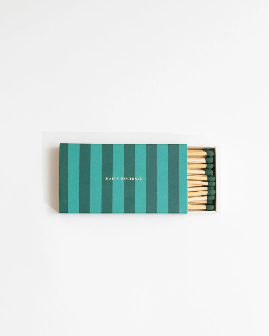 A statement candle isn’t complete without the right accessories. These holiday matchboxes are bright and colorful, holding long matches with colored tips. Foil-pressed with festive phrases, they are sophisticated yet fun, and equally as chic as their candle counterparts.