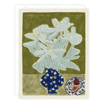 An art card crafted by Someday Studio. This card is blank inside and comes in a 100% home compostable cello sleeve and an open-end envelope with multi-color flecks