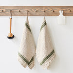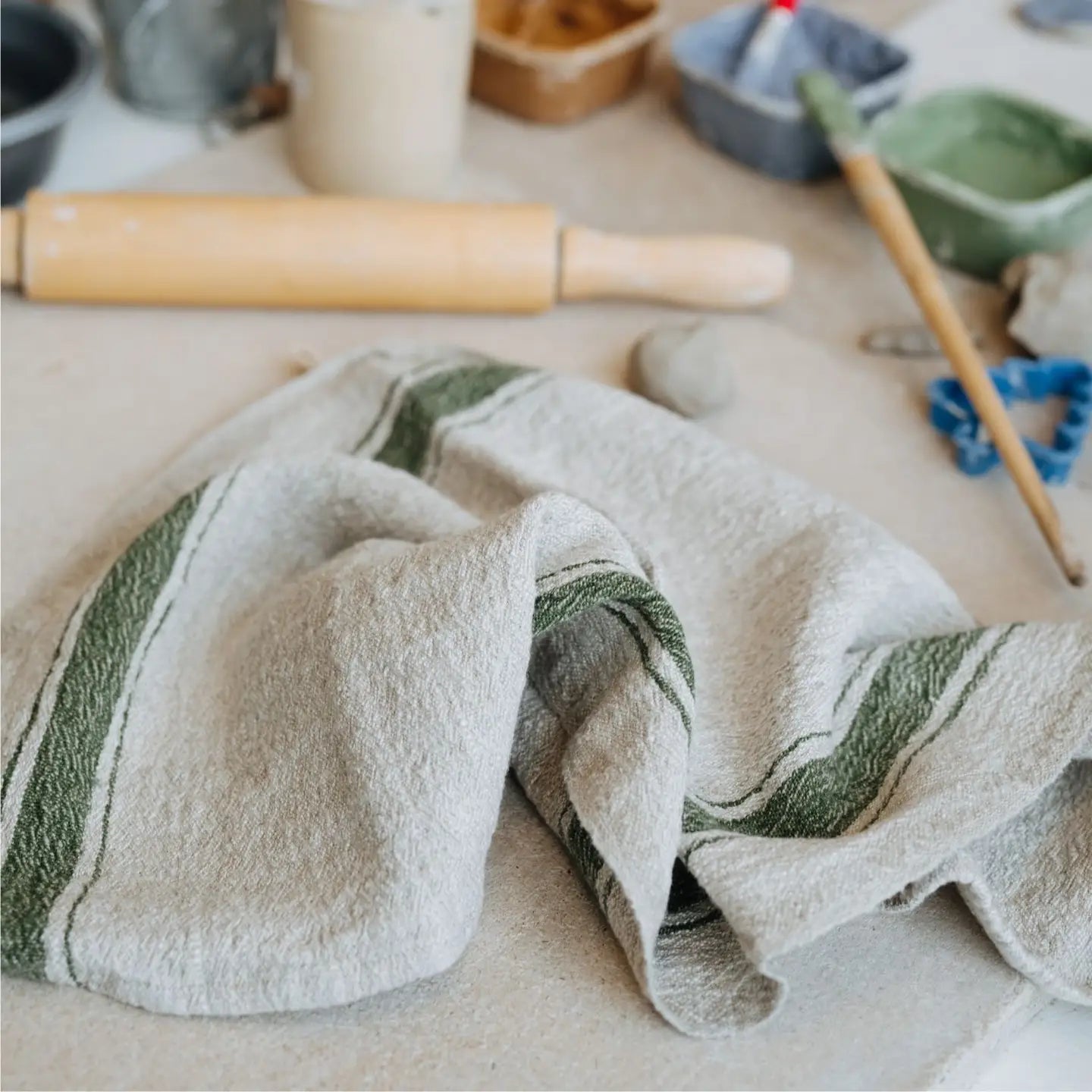 Make your daily life simply beautiful with this elegant linen tea towel. This kitchen towel is an excellent combination of function and beauty for everyday use. It is handmade using 100% natural and highly durable linen. They are irreplaceable helpers when dealing with spills and splashes. Includes a loop for easy hanging. The linen quality is perfect for absorbing moisture and dries easily and quickly.
