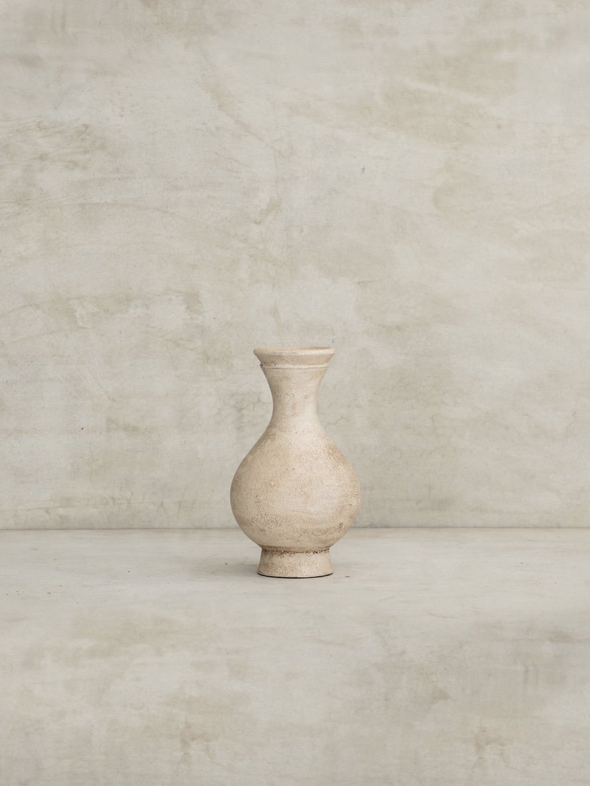 The Hourglass Vase has a distinctive antique-like look, perfect to set a minimal scene filled with dry florals, leaves, or branches. Ideal to be displayed along a table or shelf.
