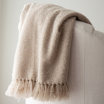 The Hudson Valley Color Block Throw's is heavily textured with a weave that is inspired by the classic French technique of looping and curling yarn. The neutral color block creates an interesting but subtle pattern.
