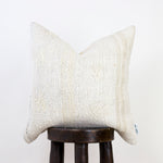 Each pillow varies as is the charm and beauty of handmade products. This piece has a woven hemp fabric on the front, a neutral solid fabric on the back, and a metal zipper closure.