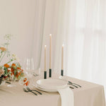 Made from American beeswax in California, each of these candles is handcrafted with care and dipped over 25 times. In beautiful subtle tones, these candles are sure to add to your tablescape or add a romantic touch to any space.