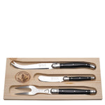 Use this three piece cheese set all year round. A classic color that will match anything, this cheese set is perfect for any occasion. The cheese fork, cheese knife, and spreader are all dishwasher safe, rust resistant, and will last a lifetime.