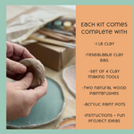 As our world becomes more digital, there is a growing desire for creative activities for kids that allow them to unplug and nurture creative expression. We desire authentic, real-life experiences for our children, and that's precisely what Petite Artisan's Creative Clay Kits offer. Each clay kit includes 1 pound of air dry clay, a set of carving tools, 1 rolling pin, acrylic paints, and 2 wood paint brushes, along with project instructions and link to additional activities.