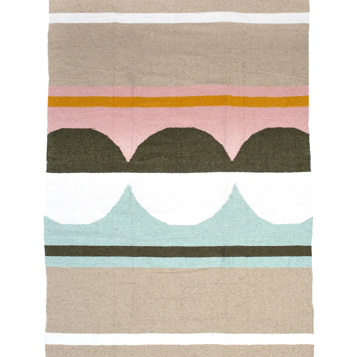 The lively and free Fresca (fresh) colorway embodies the beginning of spring with its peachy pink, fresh mint, and warm gold tones. This bright and cheerful blanket will equip you for bright and clear days full of spring blossoms and cool grassy hangs.