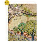 An art card crafted by Someday Studio. This card is blank inside and comes in a 100% home compostable cello sleeve and an open-end envelope with multi-color flecks