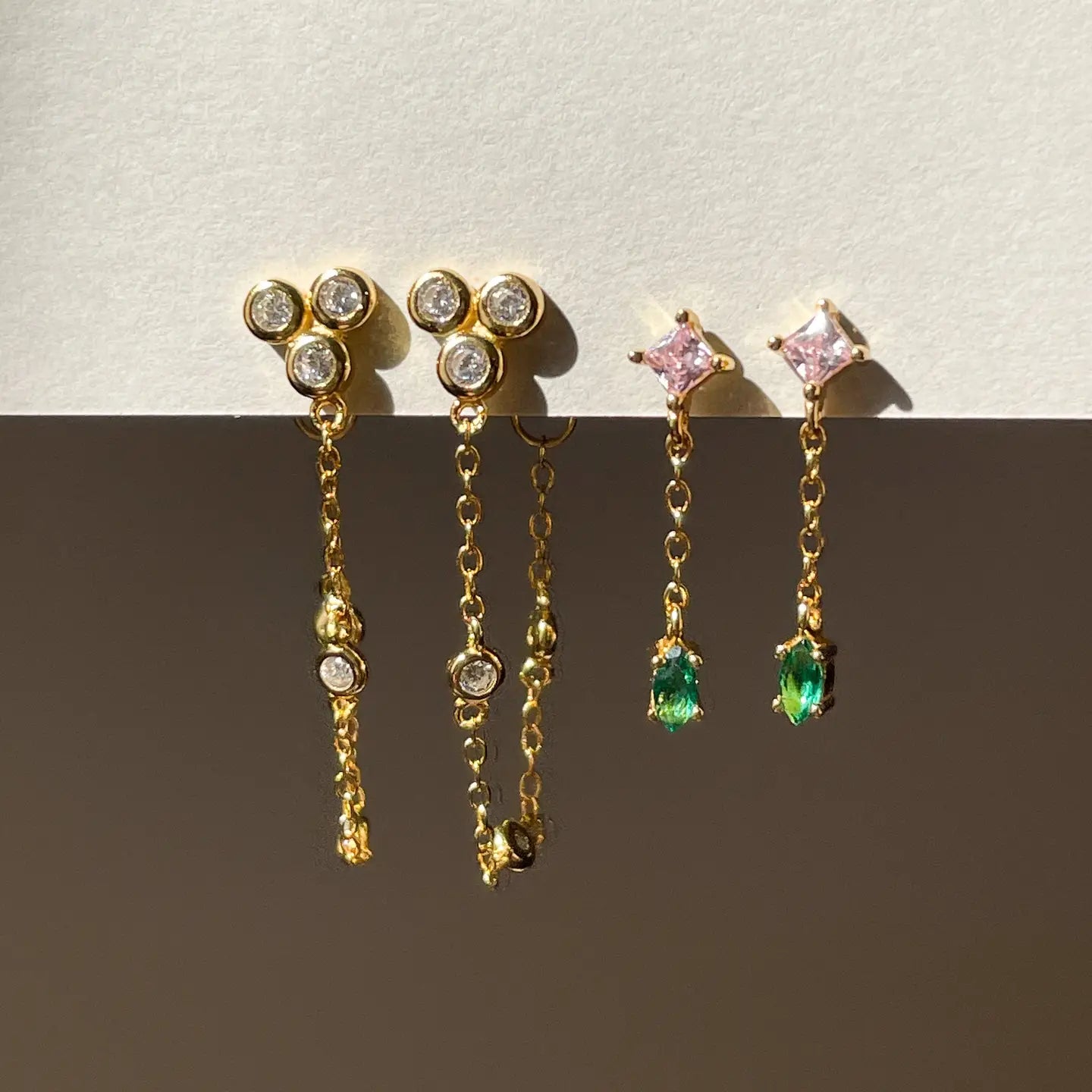 Our Marlowe chain studs are adorned with the prettiest cubic zirconia accents on chain detail, adding a sparkly and edgy touch to your ear stack. Perfect for a first or second piercing.