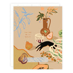 An art card crafted by Someday Studio. This card is blank inside and comes in a 100% home compostable cello sleeve and an open-end envelope with multi-color flecks