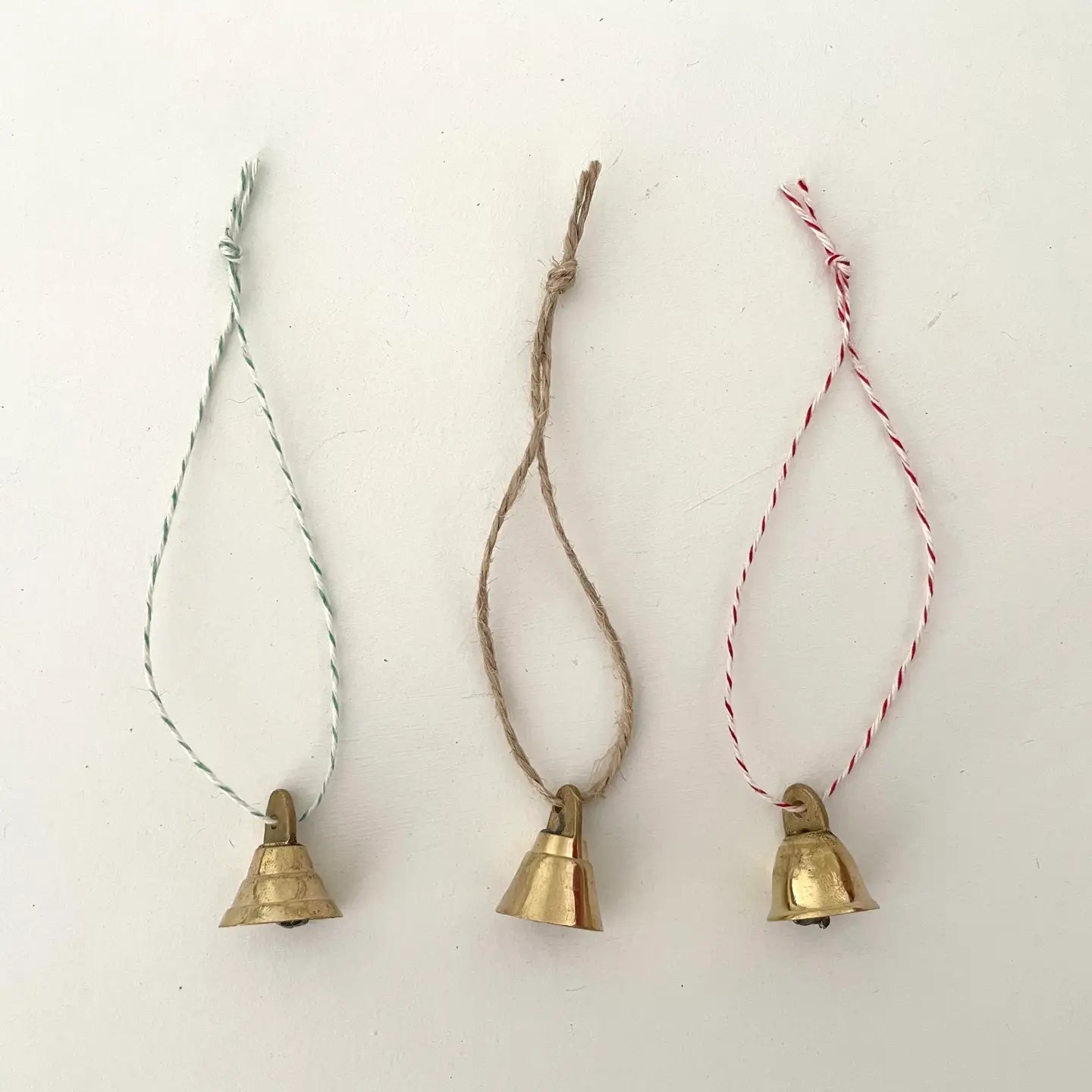 Rustic brass bells provide an old-world style to holiday decor. These ornaments are handmade 1" bells. The tin bell with brass finish has a metal striker and is strung on your choice of cord to create a simple ornament! It would also make a beautiful present topper. They are perfect for year-round use as a farmhouse accent hung on a coat rack or door knob!