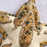 Soft, stuffed velvet adorned with glass beads creates a stunning addition to your tree or giftwrap! Featuring tremendous attention to detail like seams covered in cord stitching, beaded edges and dual teardrop designs on both the front and back, this 3D star is sure to shine no matter where you display it.  Crafted by Tara Projects, a fair trade partner, that helps transform artisans' lives and communities with new opportunities to earn sustainable income.