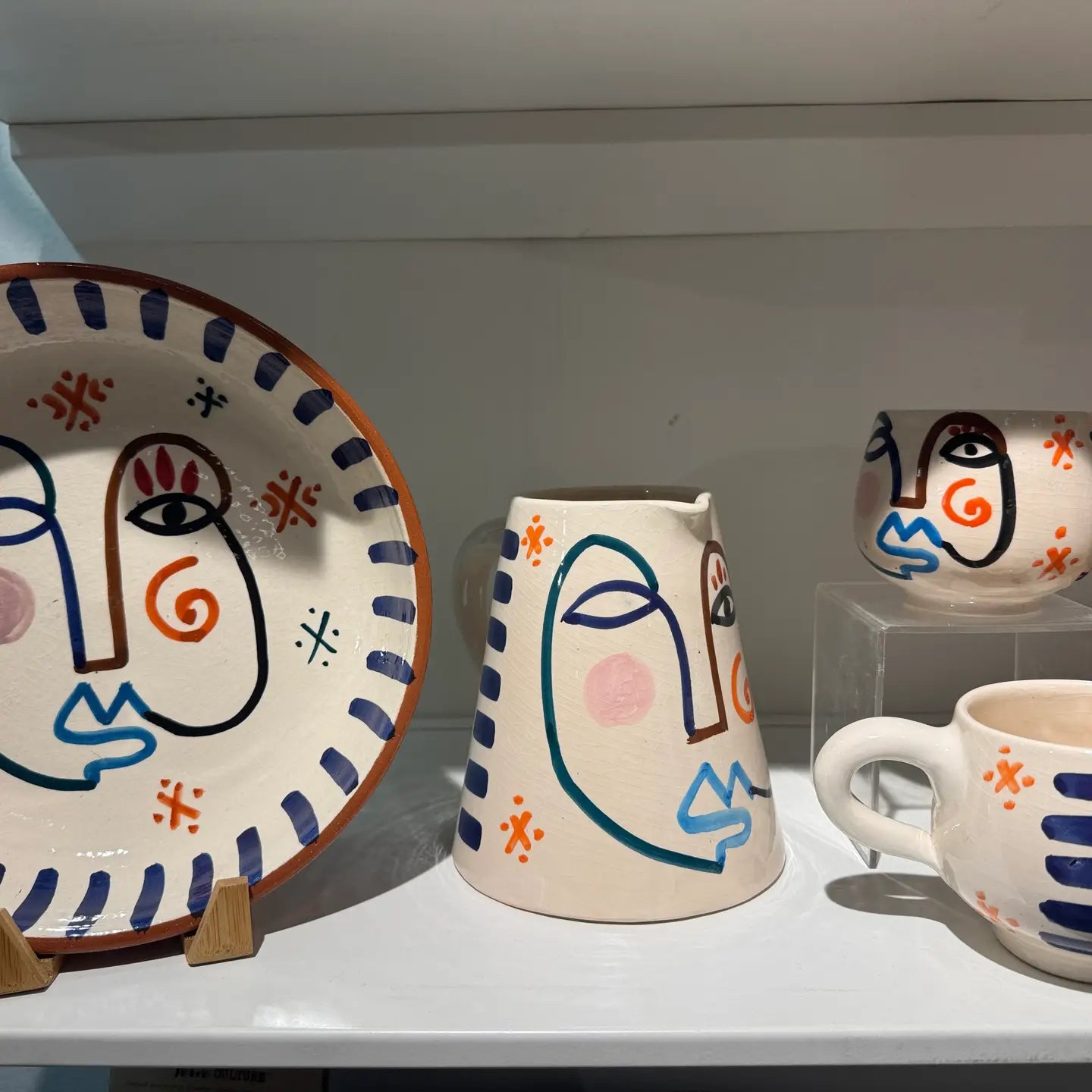 This unique ceramic mug from Morocco combines artisanal craftsmanship with modern artistry. Handmade and hand-painted by skilled Moroccan artisans, each mug features a one-of-a-kind abstract face design that adds a touch of contemporary elegance to your daily routine. With its smooth ceramic finish and distinctive lines, this mug is as functional as it is expressive — perfect for enjoying coffee, tea, or simply displaying as a decorative accent in your kitchen or home.