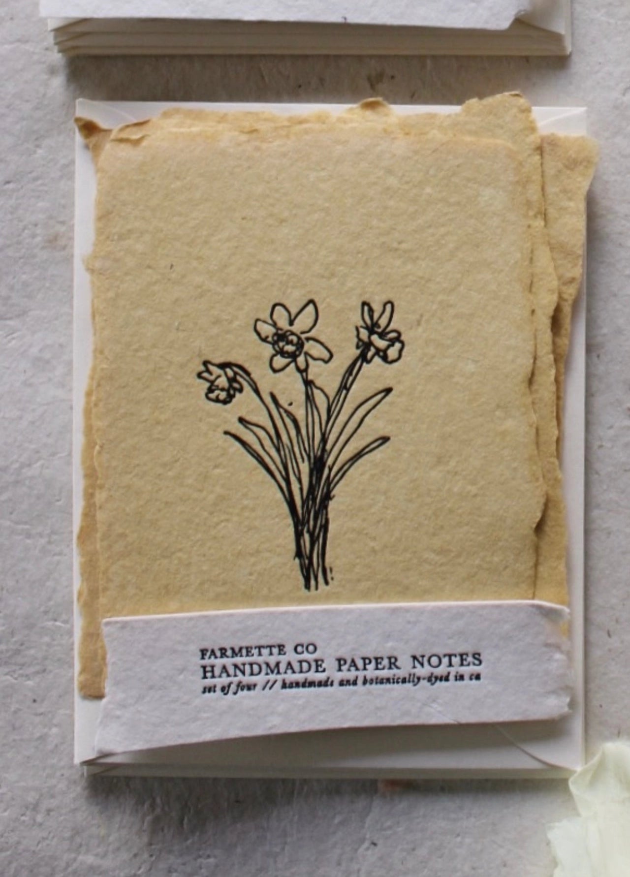 Beautiful handmade paper notecards, letterpress printed one at a time with heartfelt images and words. Full deckle edge paper handmade in Farmette's California studio, hand-fed onto antique letterpresses for a textured deboss.