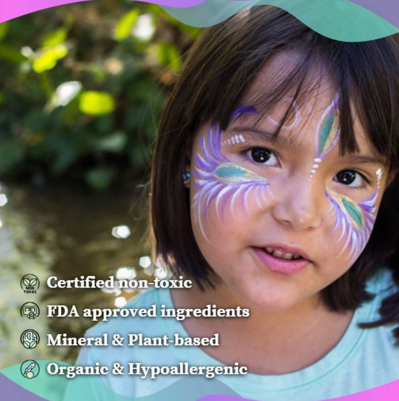 They are certified non-toxic, contain FDA approved ingredients, mineral and plant-based, organic, and are hypoallergenic. They are also free of nano particles, heavy metals, parabens, phthalates, formaldehyde, and petroleum-based dyes!