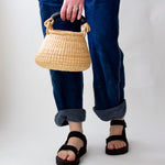 This basket tote features leather detailing and has ample storage space. Due to the handmade nature of the piece, each bag is unique and uniquely yours. It carries with it a chapter of the artisan's tale. Each tells a story of craft, culture, and innovation. It is solely yours and connects you intimately to a person you have never met. This is the beauty of a handmade piece.