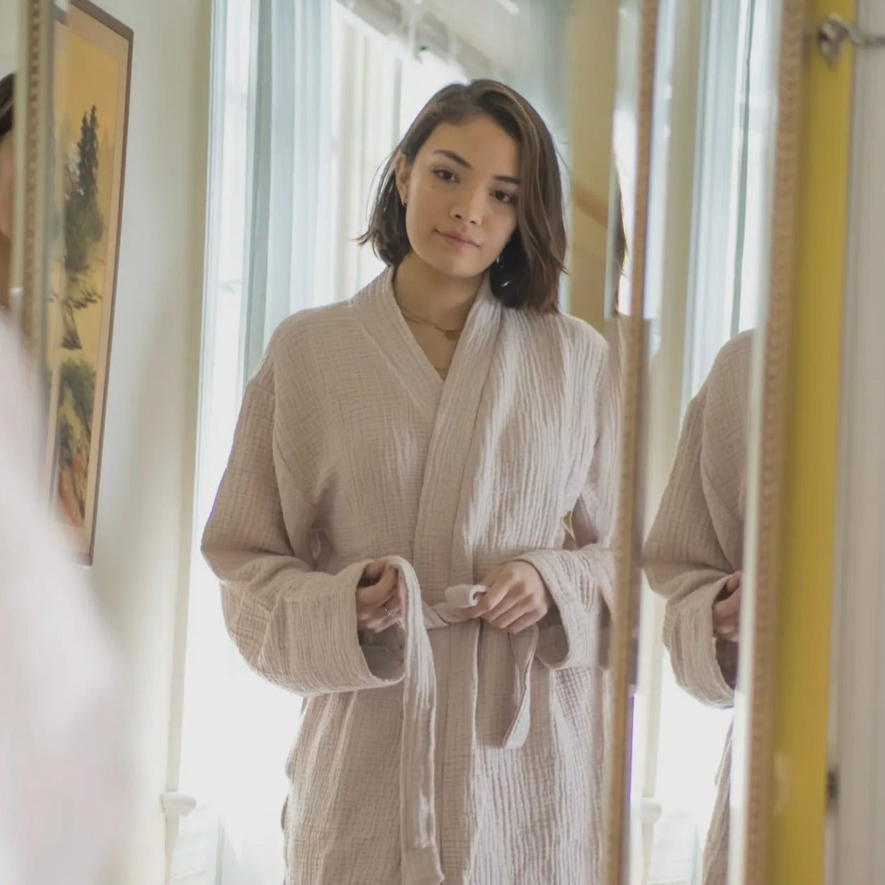 These gauzy robes are made for that Sunday morning, sipping coffee, lounging in bed kind of mood. Made from 4-ply gauze, 100% long-staple Turkish cotton.