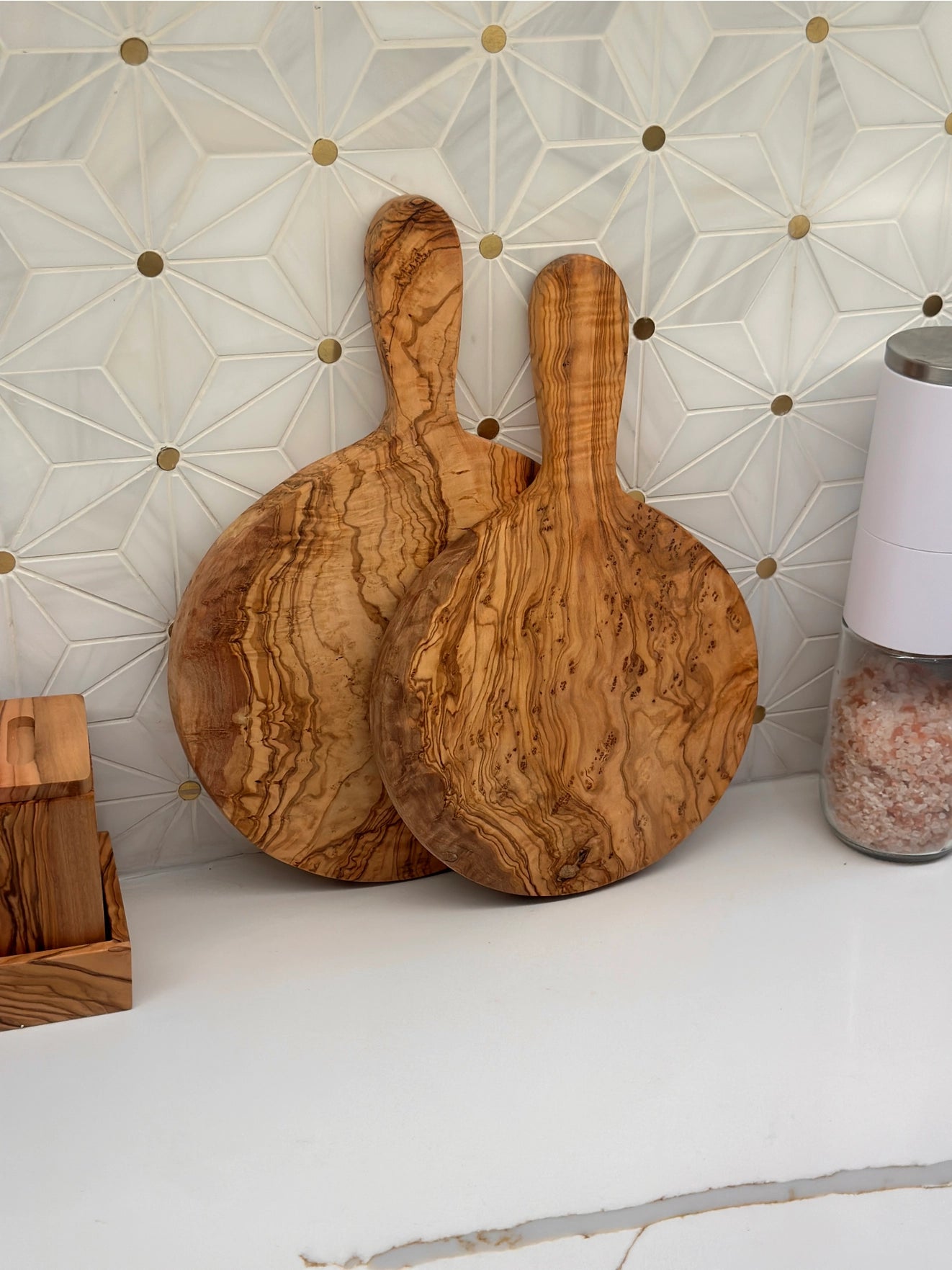 Introducing the petite Olive Wood Round Paddles Cutting Boards – small in size, big on charm. Crafted from premium olive wood, these adorable cutting boards bring both functionality and style to your kitchen. Perfect for smaller tasks, their round paddle design adds a touch of cuteness to your culinary space.