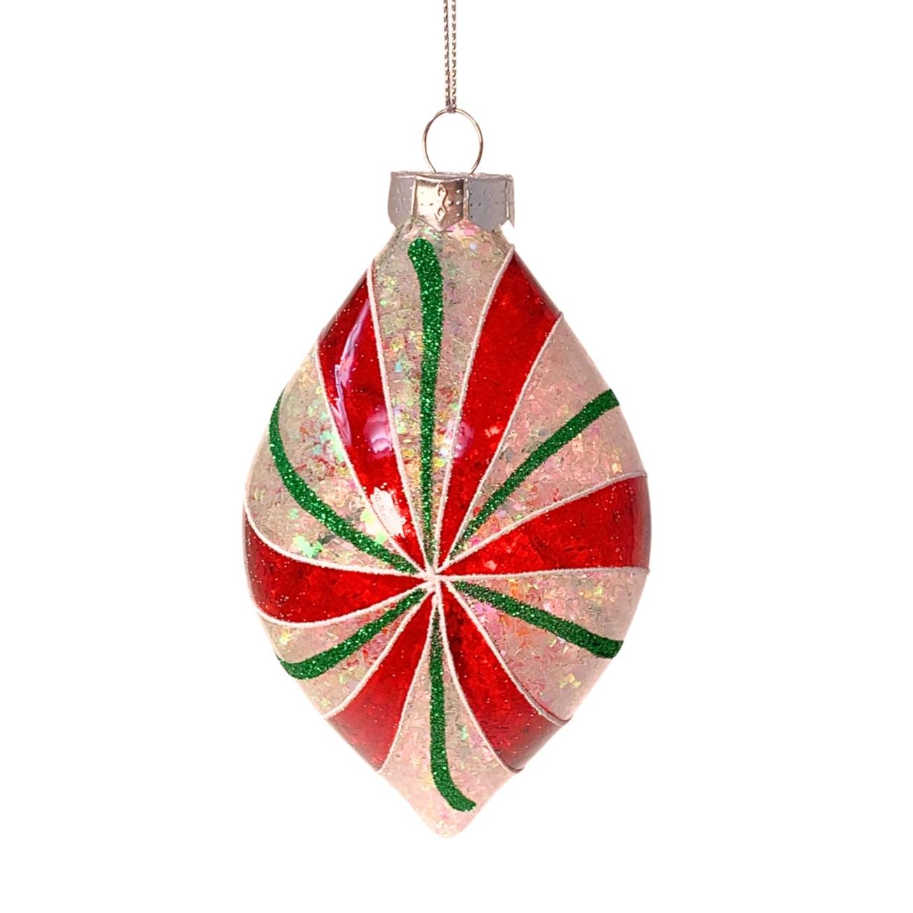 Peppermint Twist Drop Glass Ornament
