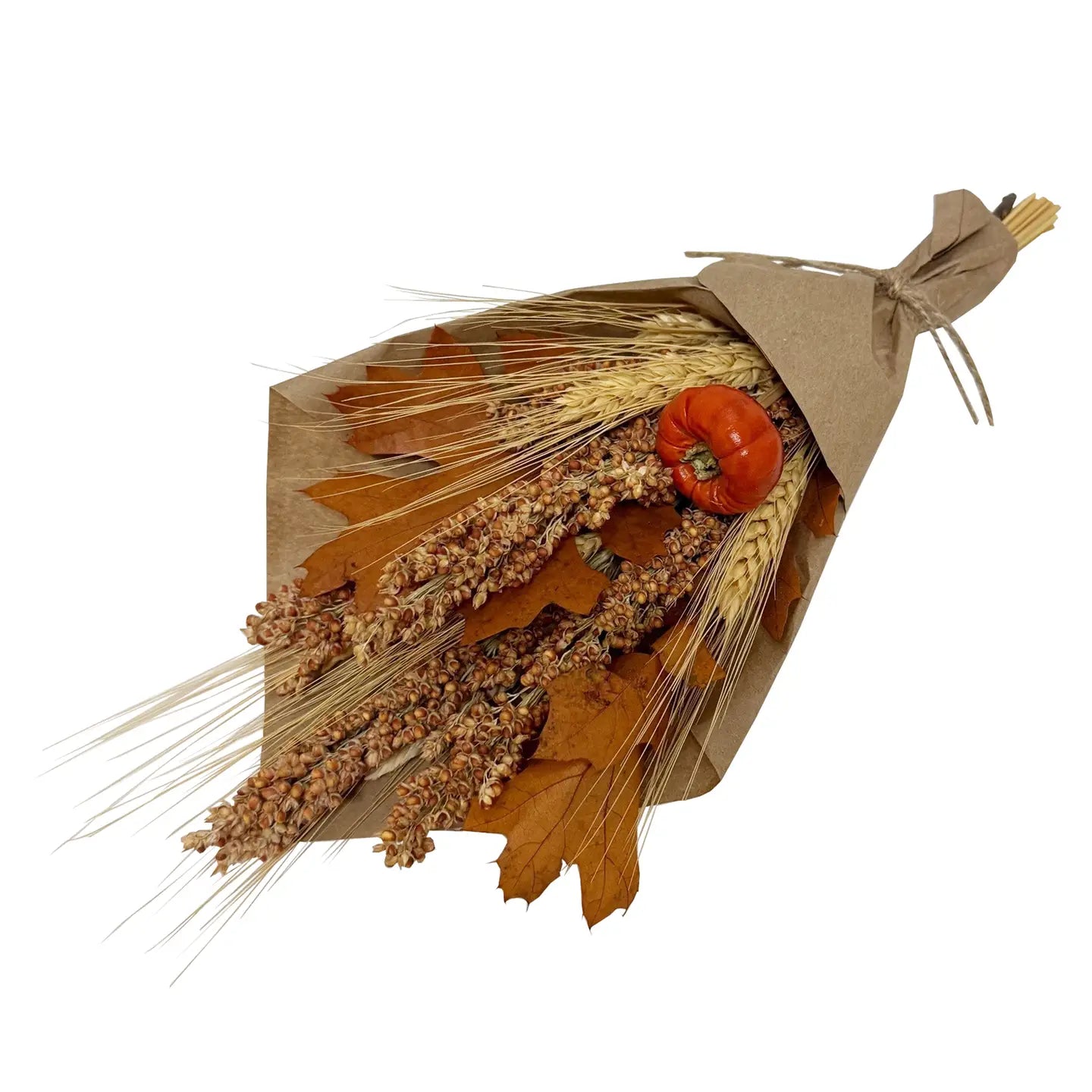 This petite size bouquet features a mix of natural pompino, oak leaves, triticum, and grains to create this harvest farmhouse bouquet look.
