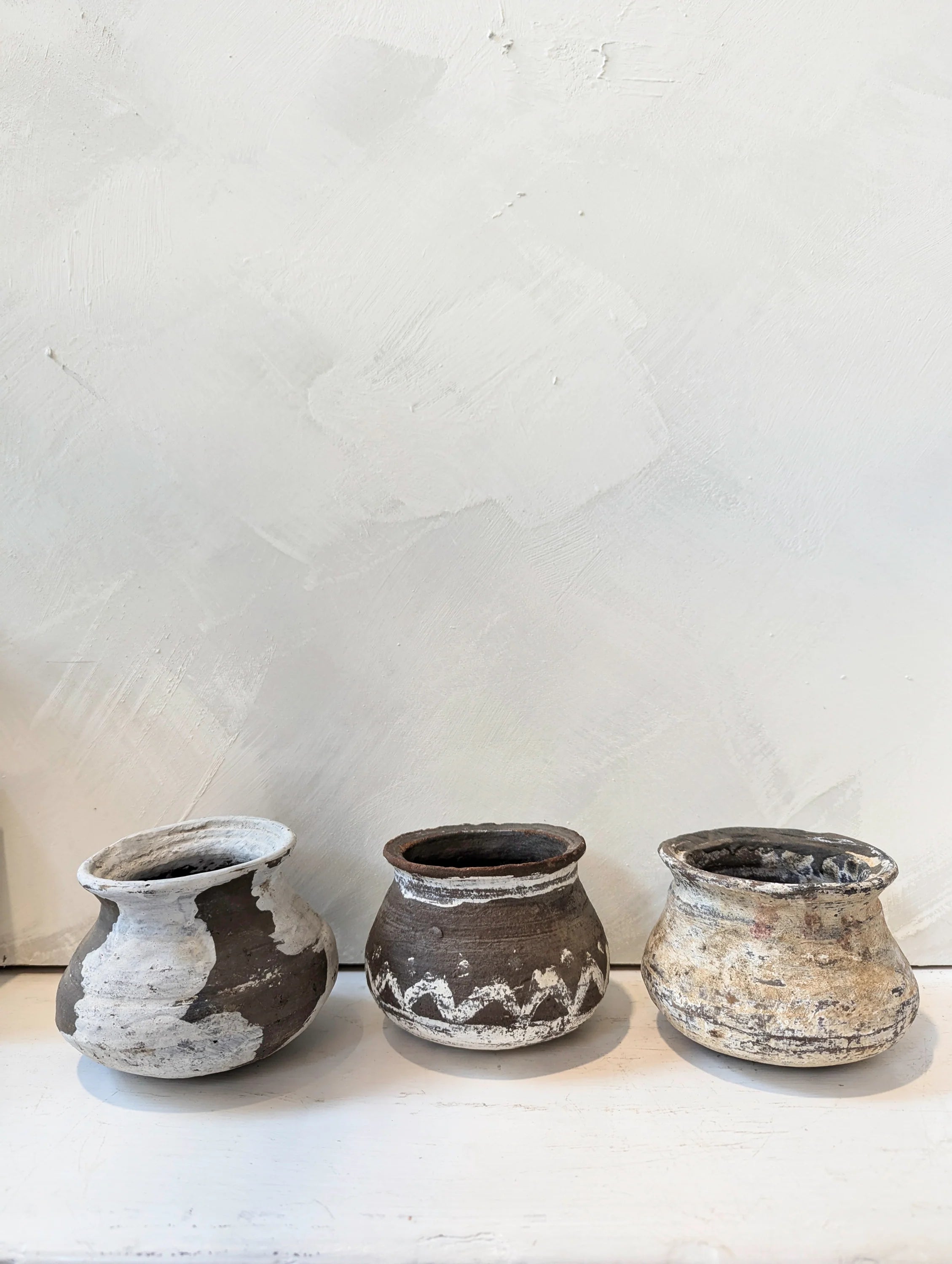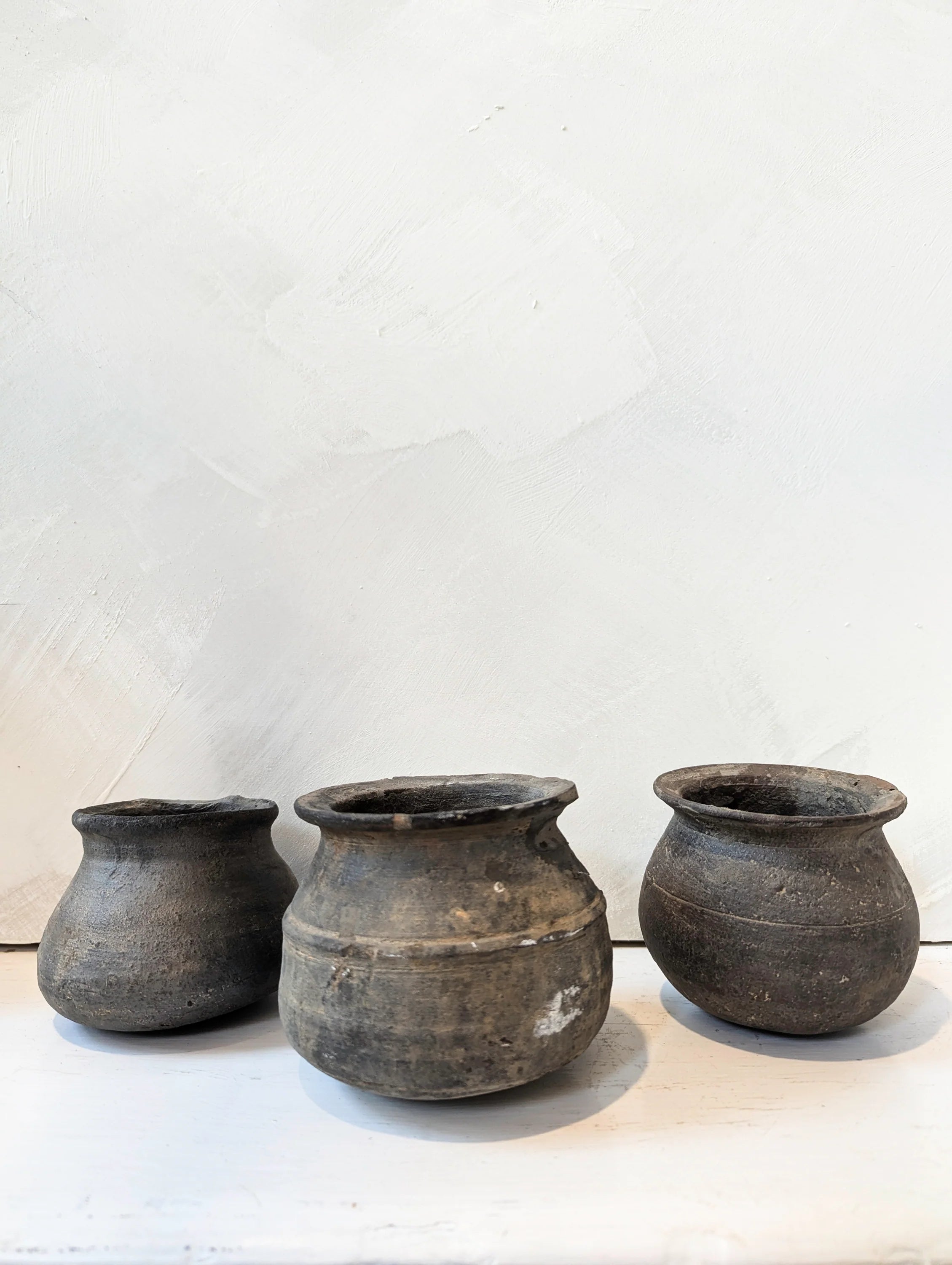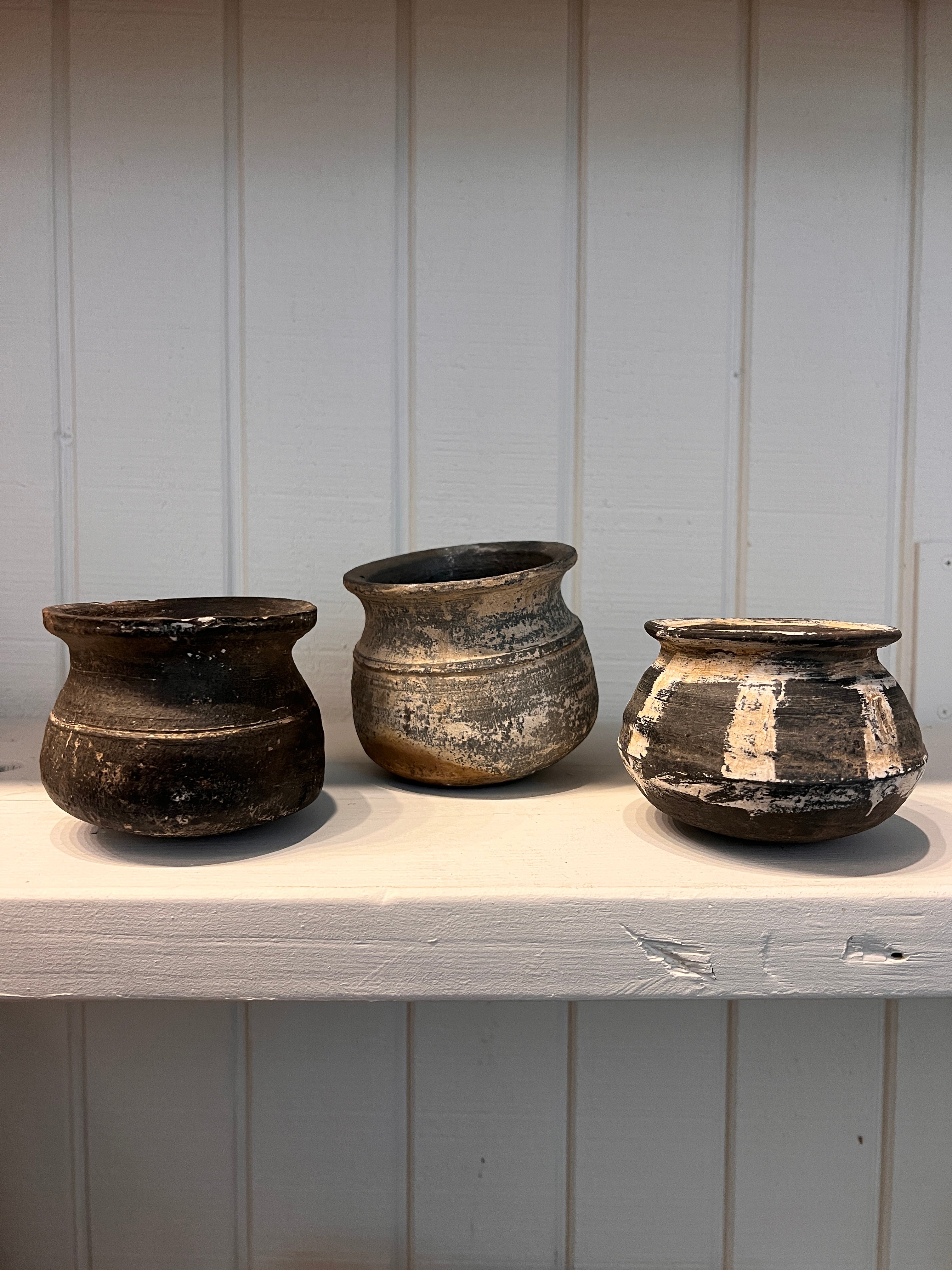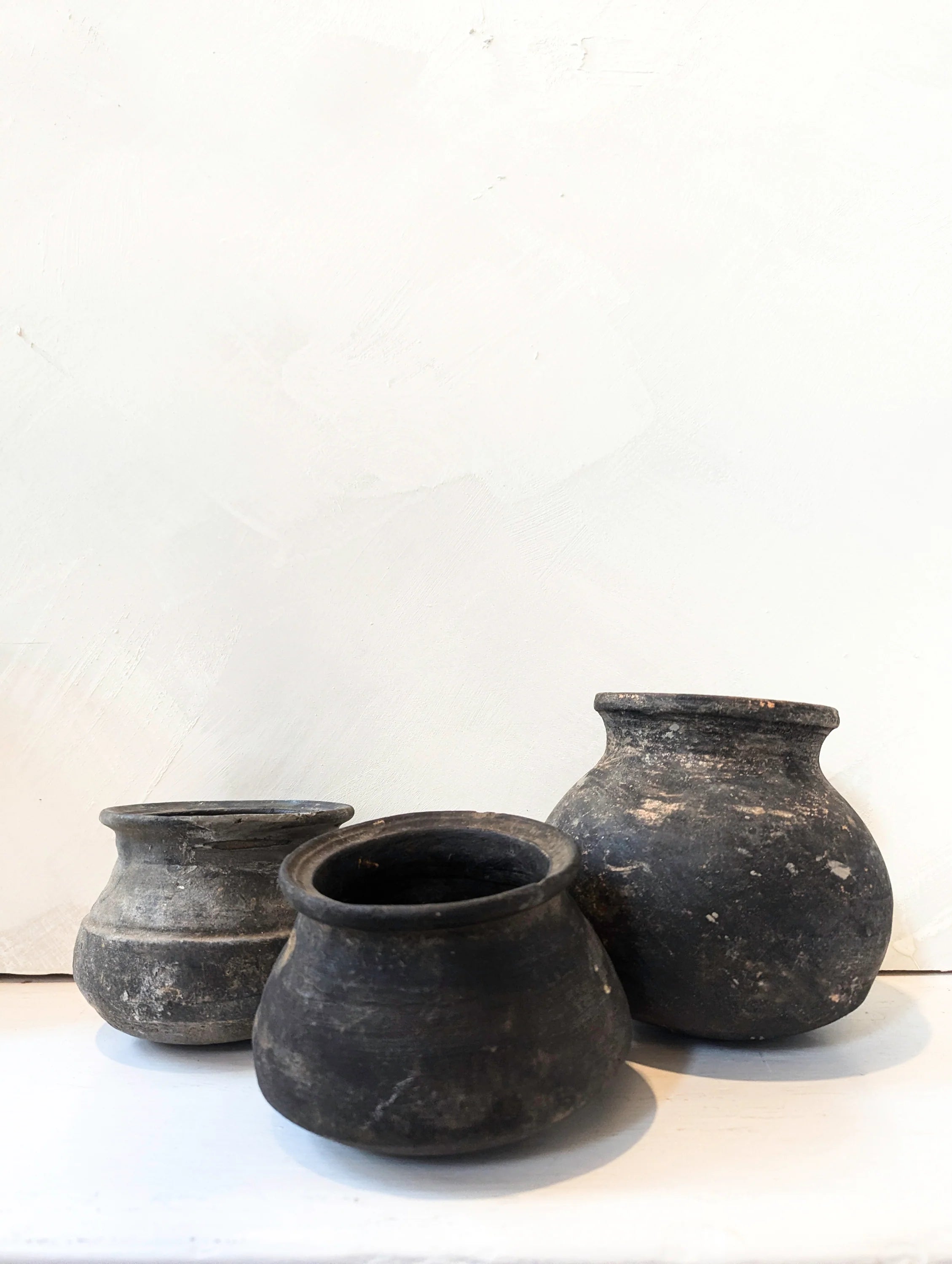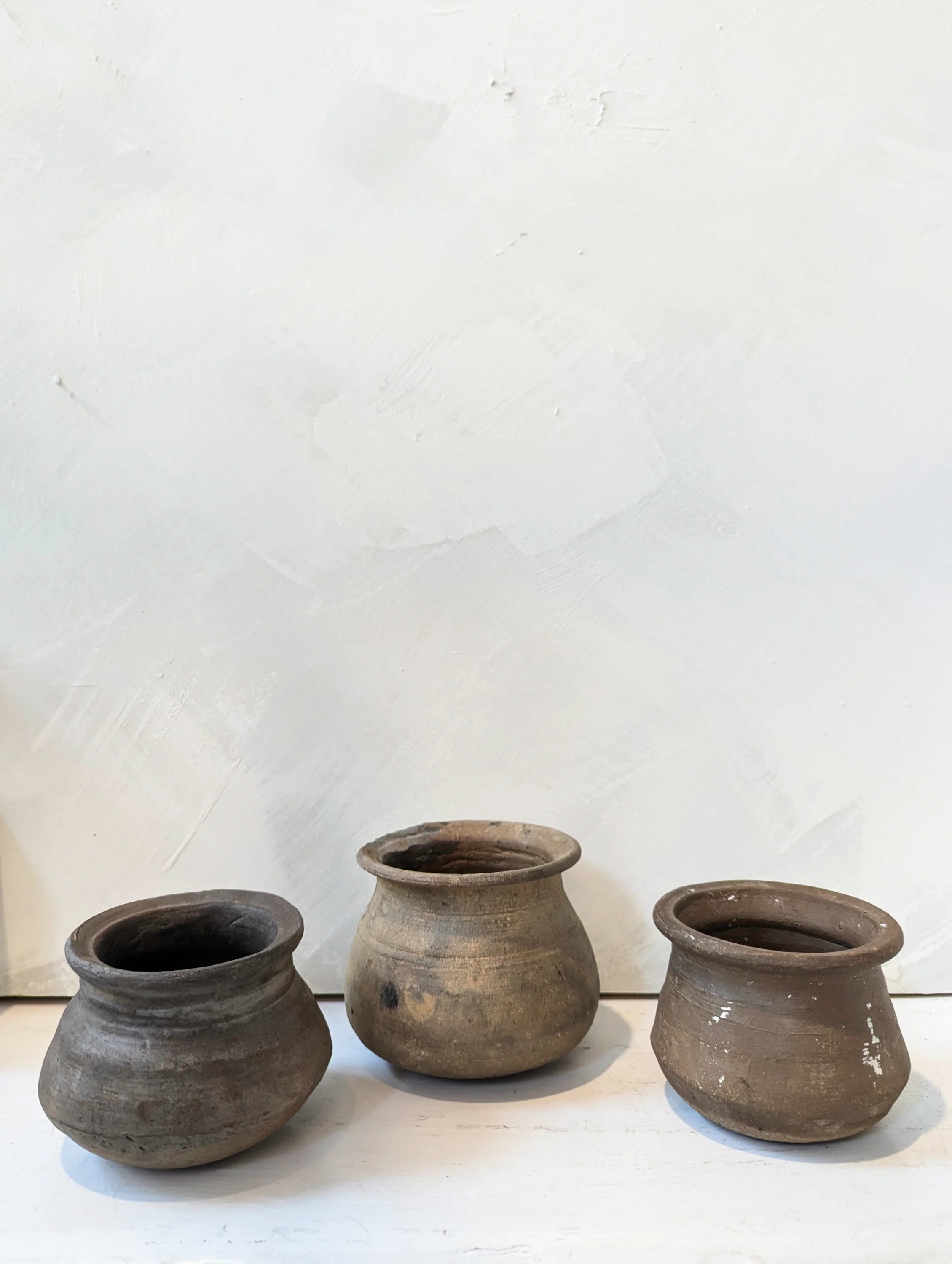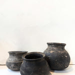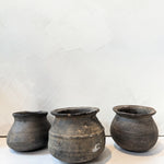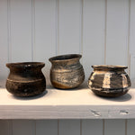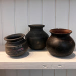 Each vintage clay pot sourced from the Karnataka State in the southwest India region features a darkened hue and the character-enhancing marks of daily use. Each piece is unique, which adds to the beauty of every clay pot.