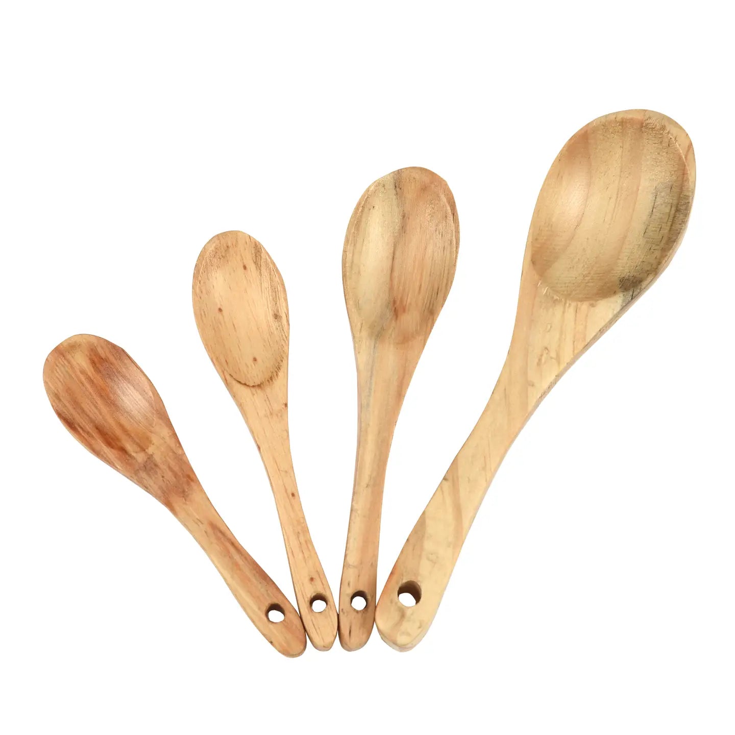 This Pot Holder Gift Set includes a small and large potholder and four small acacia wooden spoons.