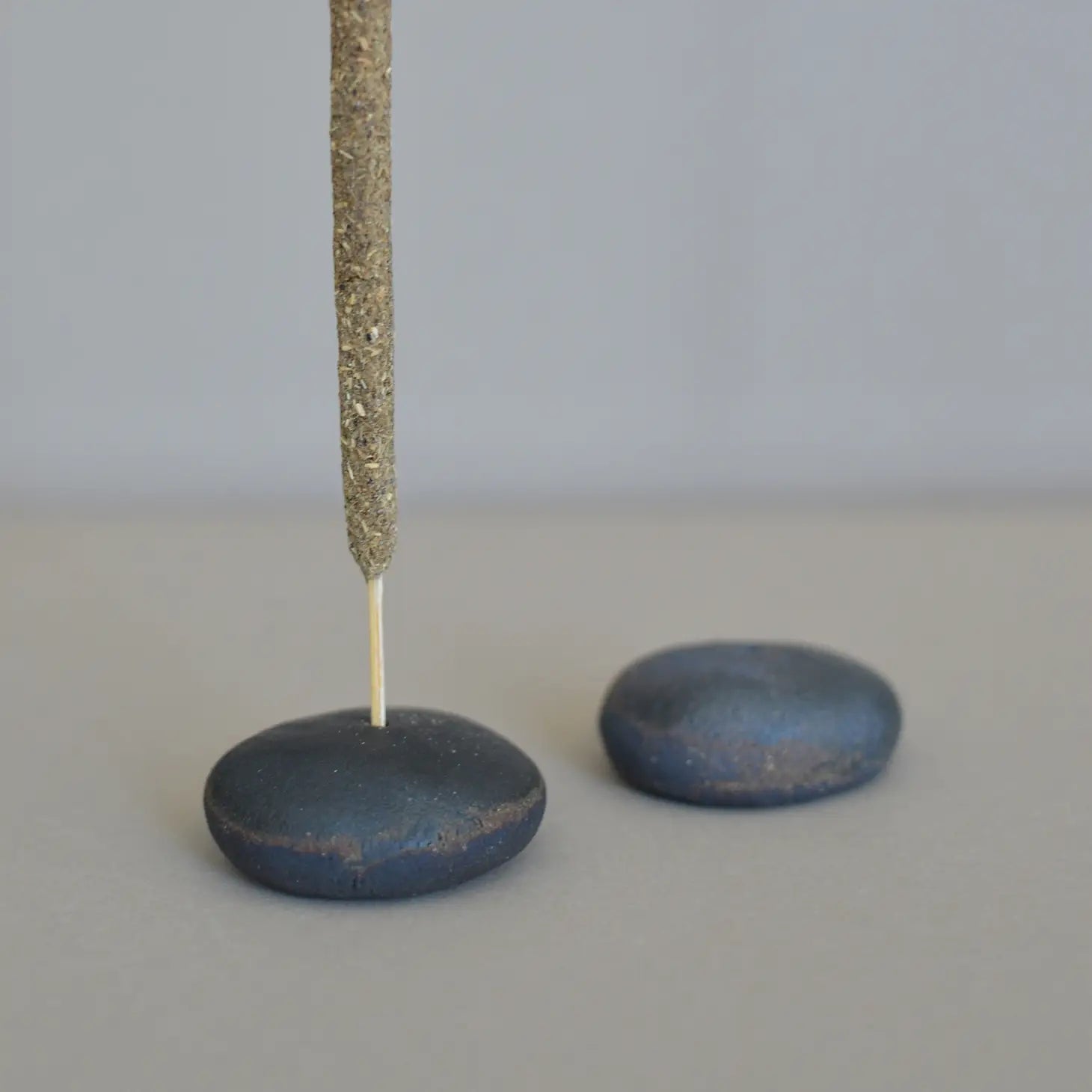 This Handmade Ceramic Incense holder is made with Clay. A wide base to catch burning incense.